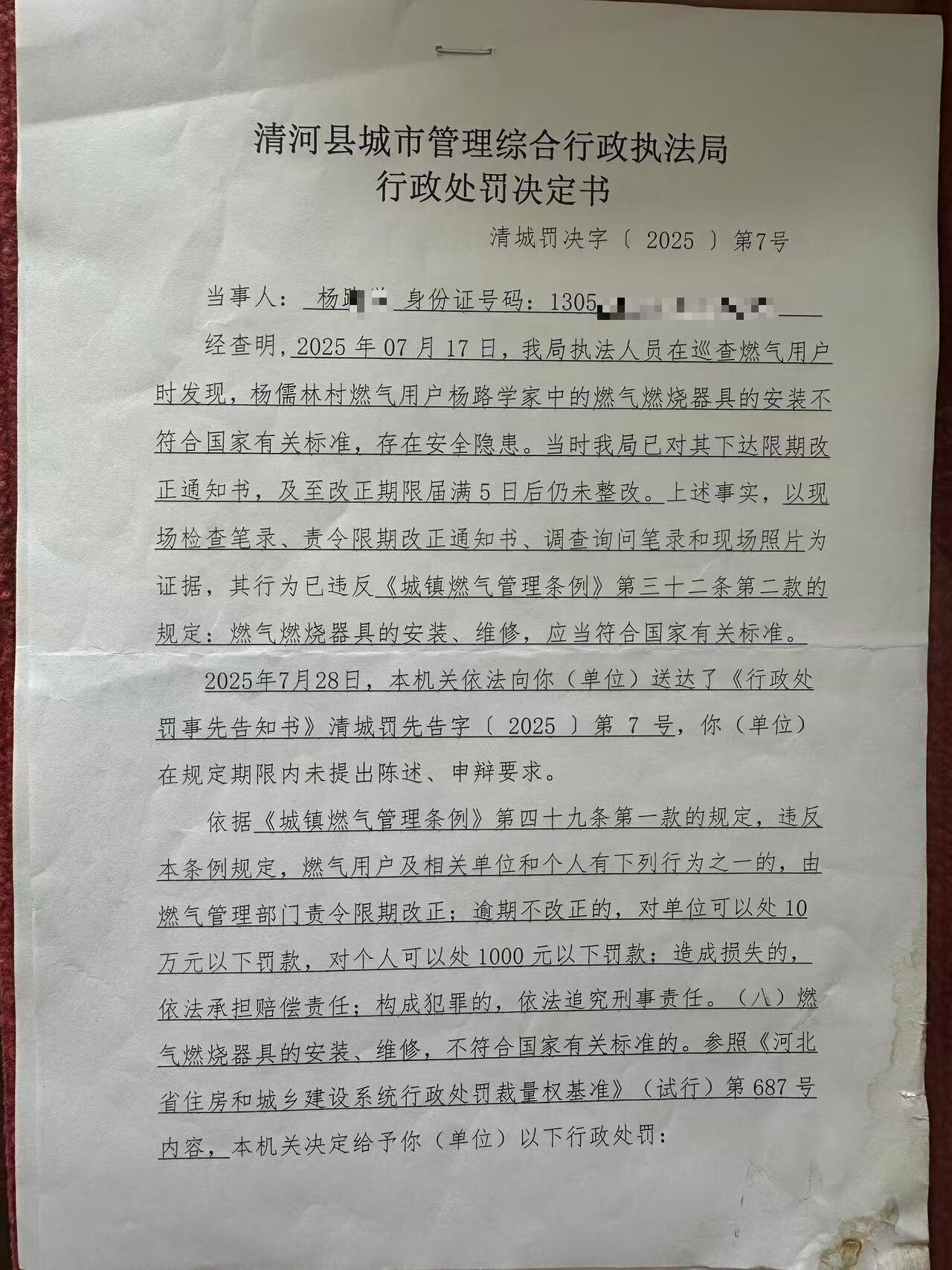行政处罚决定书7号